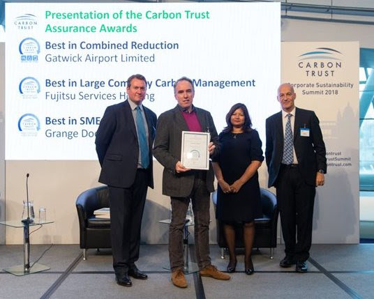 Last month saw our long-term client Grange Door Systems win the ‘Best in SME Carbon Management‘ award at the 2018 Carbon Trust Assurance Awards in London. A big congratulations to Kevin and the team for their long-term commitment.
